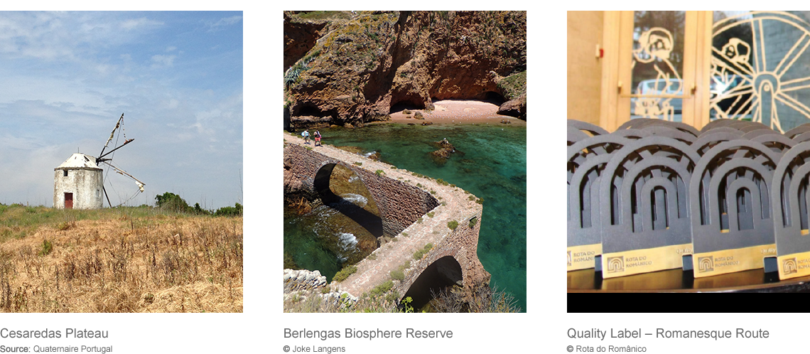 Another interesting example is the Study for the Creation and Implementation of New Thematic Routes in the Cesaredas Plateau, developed by Quaternaire Portugal for the West Inter-municipal Community (CIM Oeste), a territory shared by the municipalities of Lourinhã, Óbidos, Peniche and Bombarral. Three routes were designed in this context, which cross the territory and establish a new touristic product of the region. They promote the visit and fruition of existing natural, historic and cultural assets, and aim to increase the visibility of the Plateau, as well as to enhance the West’s appeal to visitors. This study started off with an analysis of the existing patrimonial assets, and the understanding of the local dynamics and supporting infrastructures in the Plateau region. On a second stage the main objectives were thus defined, which led to the development of interpretative content, the design of routes and a communication plan, and the prediction of future interventions.
